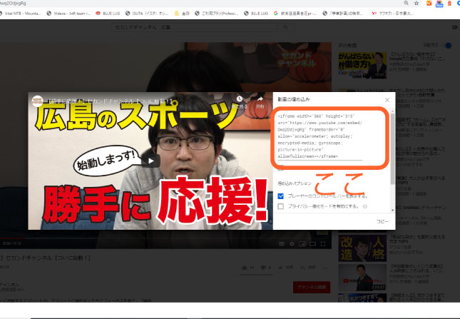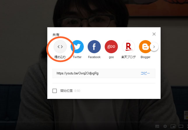 この埋め込む というのをクリックします。